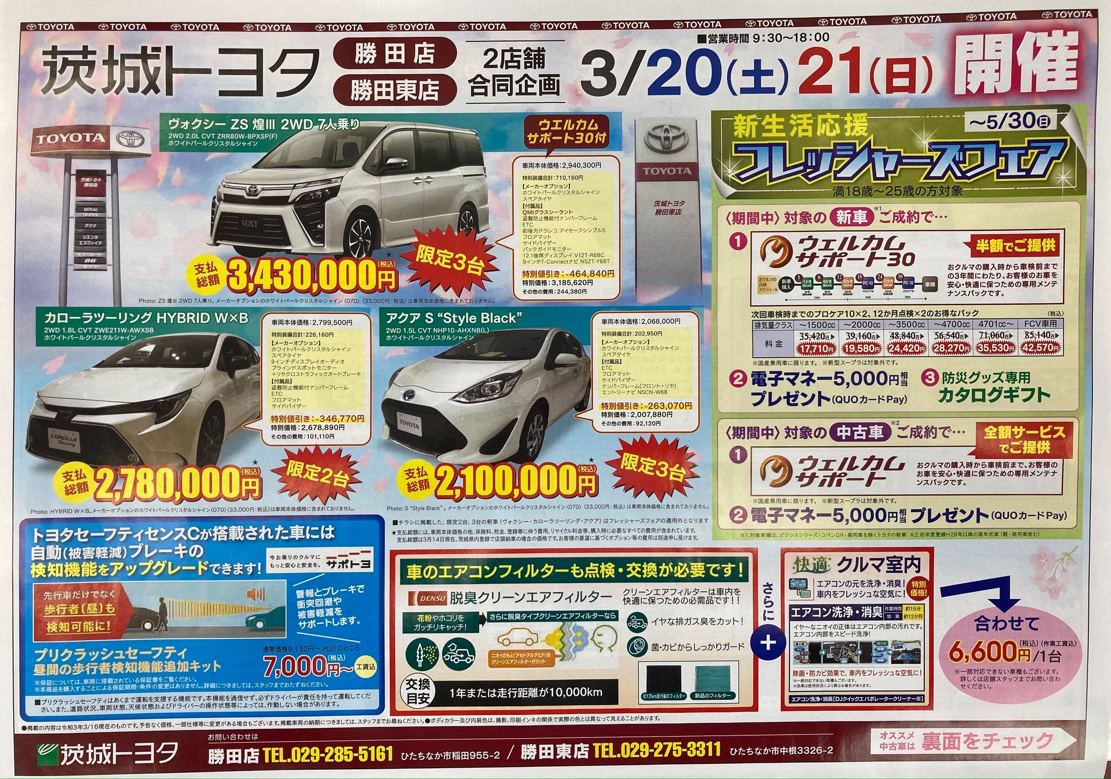 スペシャル特選車をご希望のお客様は、3/20㈯AM9:30に販売スタートとなりますのでそれまでにお越しください。