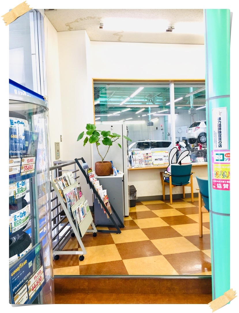 うさたろう、今日はサービスの待合室でのんびりしてみようと思います☆では、下の写真をご覧ください☆自動ドアを入るとすぐにサービスの待合室があるのですっ♪雑誌は何を読もうかな?新聞でも読んじゃおうかな?フフフ☆
