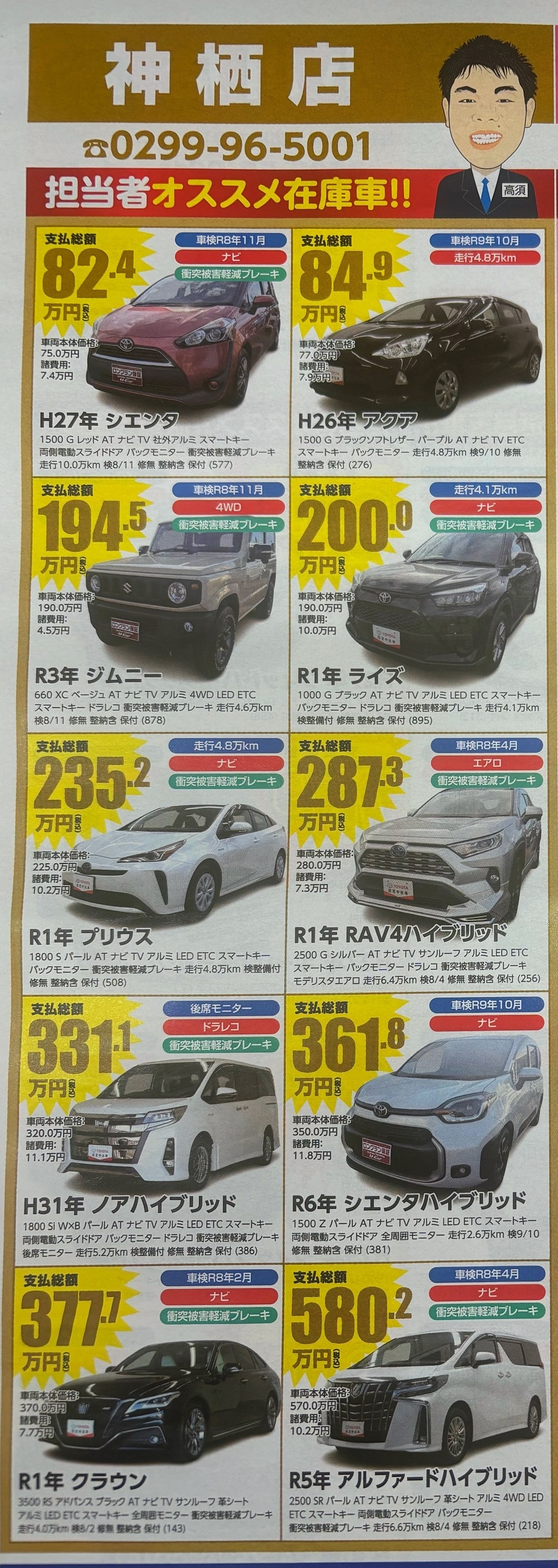 チラシ表面の厳選目玉車に限り、1月10日(土)9:30販売スタート!
