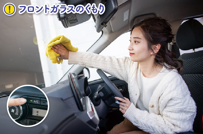 冬は外気温が低いのに対し、車内は暖房で暖かく保たれているため、車内と車外の温度差が大きくなり車内外の境界線にあたるフロントガラスがくもりやすくなっています。