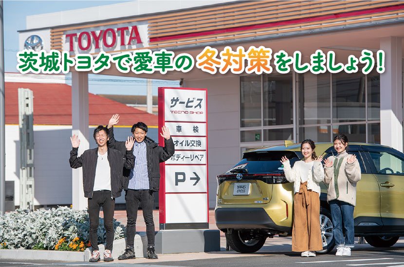 スタッドレスタイヤやバッテリー など、冬を愛車と快適に過ごすためにも、お近くの茨城トヨタ で点検をしてみませんか?トヨタ 車以外のクルマでも、他のディー ラーでお求めいただいたクルマで も大丈夫です。スムーズに作業 ができますよう、ご予約のお電話 をお願いいたします。