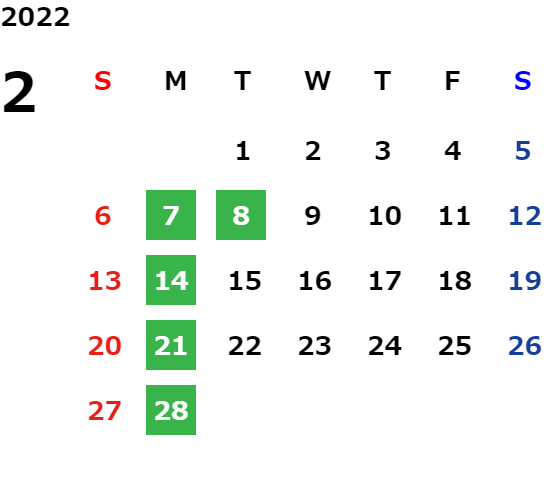 月曜定休日を基本としておりますが、不規則でお休みを頂く場合もございます。定休日の詳細は営業日カレンダーをご参照ください。