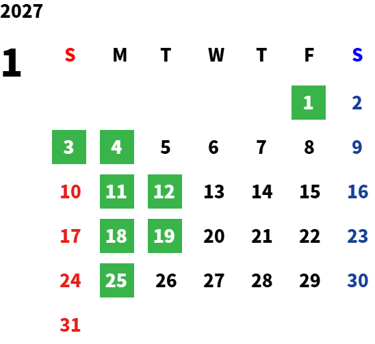 営業日カレンダー