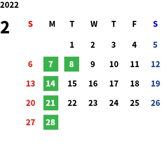 月曜定休日を基本としておりますが、不規則でお休みを頂く場合もございます。定休日の詳細は営業日カレンダーをご参照ください。