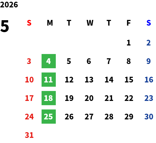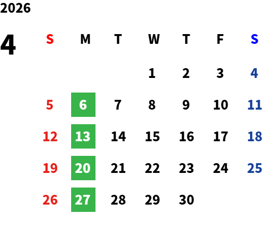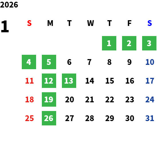 月曜定休日を基本としておりますが、不規則でお休みを頂く場合もございます。定休日の詳細は営業日カレンダーをご参照ください。