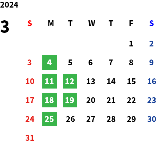 月曜定休日を基本としておりますが、不規則でお休みを頂く場合もございます。定休日の詳細は営業日カレンダーをご参照ください。
