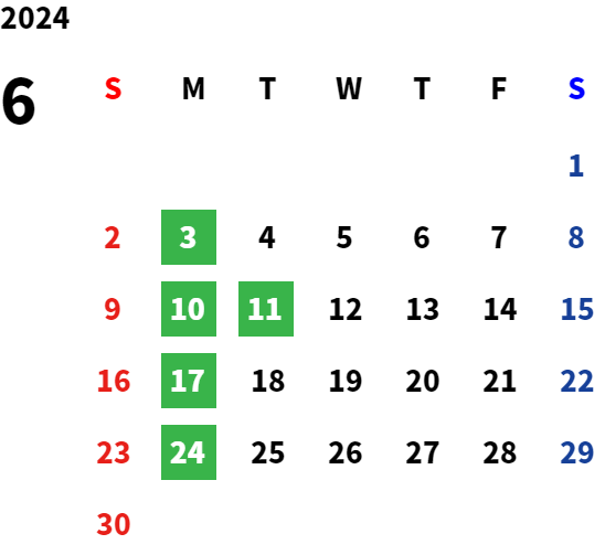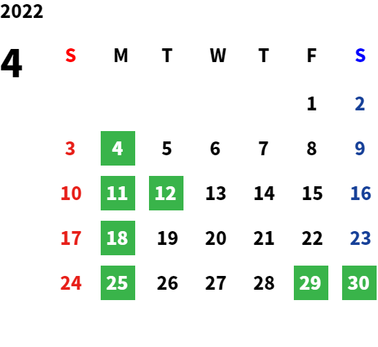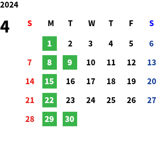 月曜定休日を基本としておりますが、不規則でお休みを頂く場合もございます。定休日の詳細は営業日カレンダーをご参照ください。