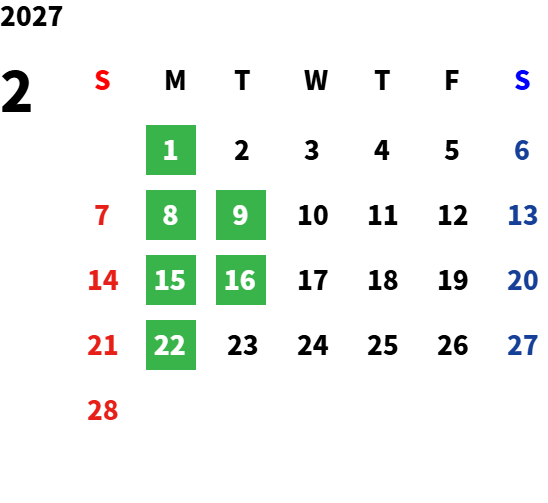 営業日カレンダー